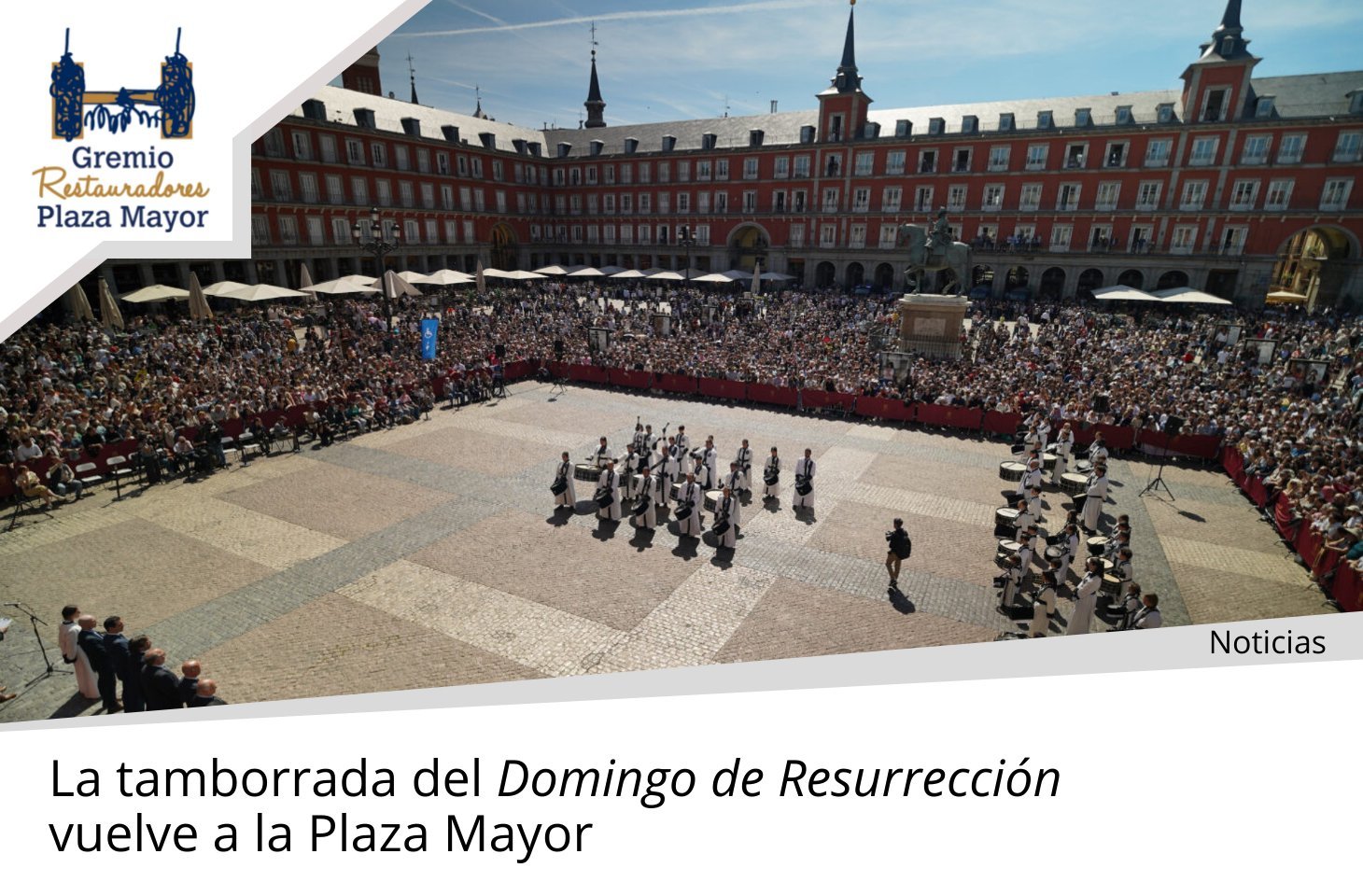 Este domingo 5 de abril, nuestra Plaza Mayor ha vuelto a llenarse de tambores. La tamborrada de Madrid, que cada año cierra la Semana Santa con un recorrido por el casco histórico, llegó a la plaza pasada la una de la tarde con el estruendo habitual de bombos y redobles. Miles de personas esperaban en los soportales y en el centro de la plaza. Los hosteleros del barrio llevaban desde primera hora con las terrazas a pleno rendimiento. El recorrido